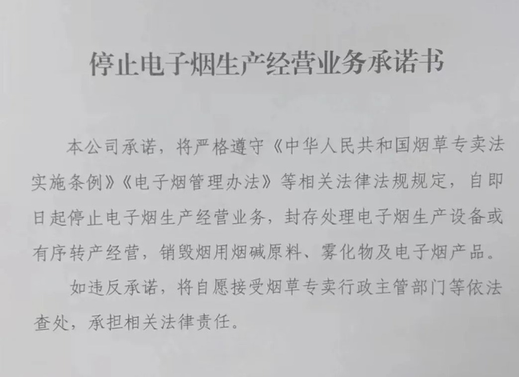 12月7日消息,藍洞獲悉,深圳目前已經開始向轄區內無證電子煙企業簽署停止電子煙生產經營業務承諾書。...